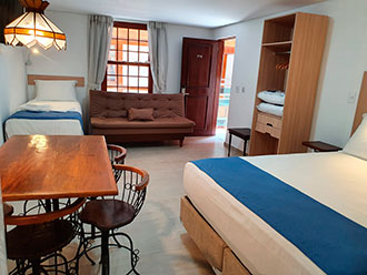 Pensando nisto, colocamos para seu conforto, um colchão de molas ensacadas com 33 cm de altura, travesseiros que aderem ao seu biótipo, lençóis macios com 200 fios, água quente nas pias do banheiro e na copa/cozinha completa, com talheres, pratos, copos e canecas, um ar condicionado de 12.000 BTU’s, silencioso, microondas, sanduicheira, liquidificador, TV 43” com netflix, youtube, uma internet dedicada de alta velocidade e uma máquina de café expresso com blends importados. Estacionamento disponível a ser reservado.