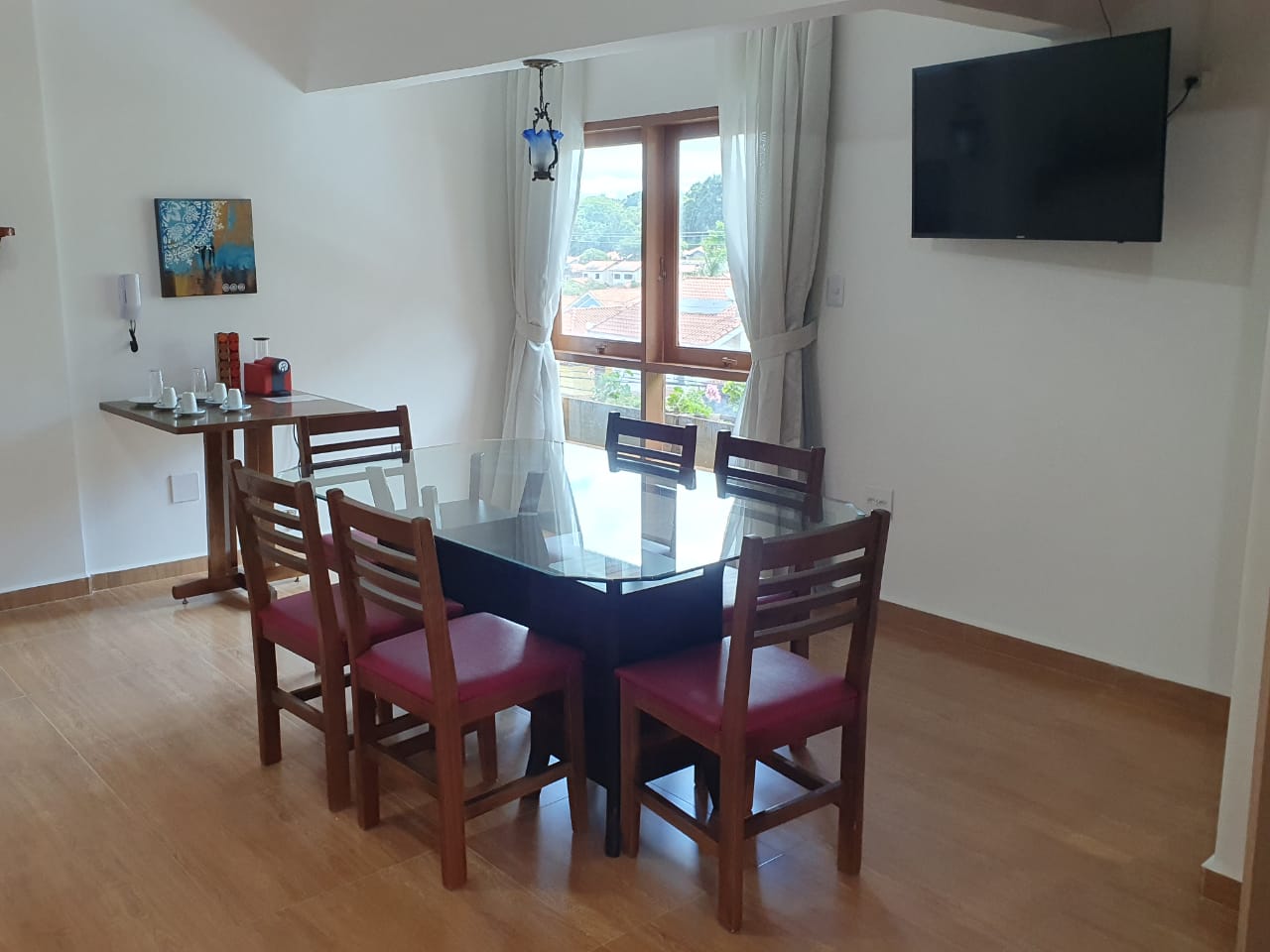 Trata-se de um apartamento onde o hospede pode trabalhar com todo conforto, com Internet de alta velocidade, café expresso, com o diferencial de utilizar como sua casa pelo tempo que desejar.